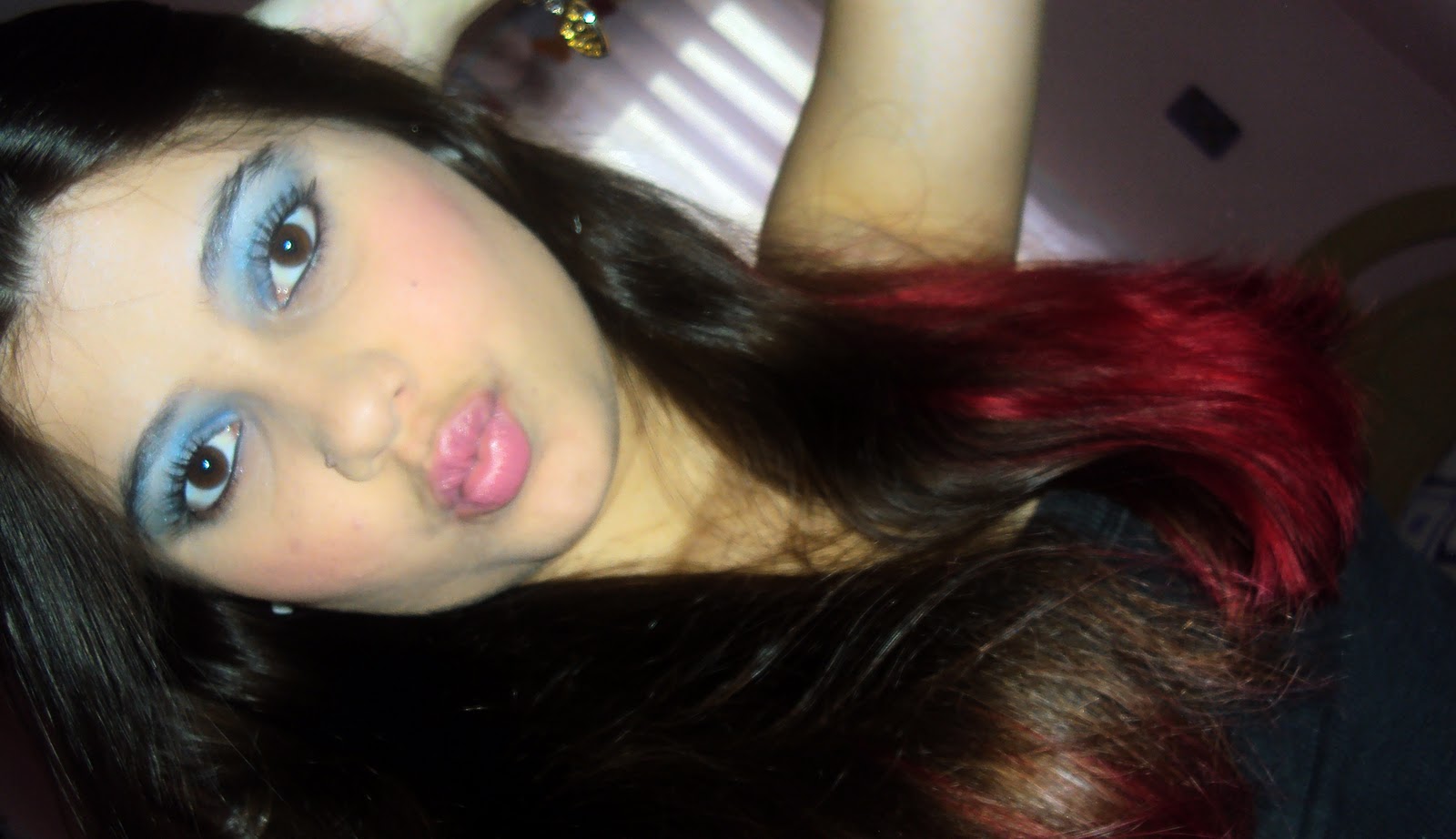 sombra azul, rimel,laís de olho,e o mínimo possível de pó e blush ^^ mas enfim,